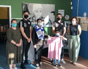 El CD Marino, representado por Ángel Galván y Samu Arbelo, visita la Fundación Canaria Pequeño Valiente.