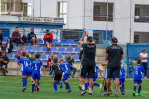 Los mas pequeños disfrutando y aprendiendo del fútbol de la mano de sus entrenadores Miguel Duque y Jonathan Sambola.